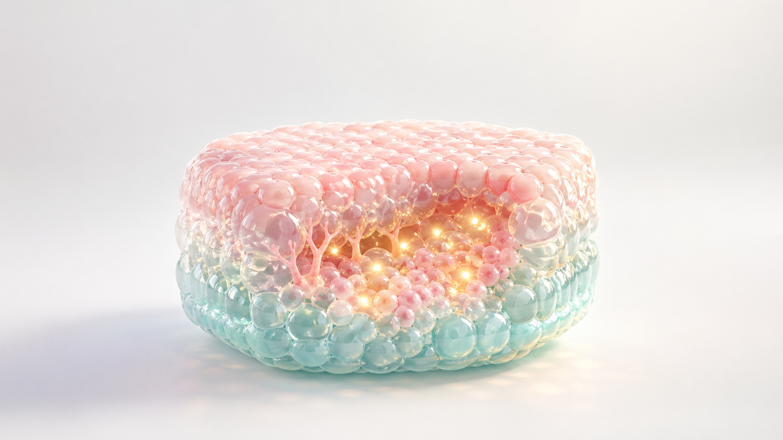 Scientific restraint is important. Organoid visuals should not imply anatomy or clinical behavior that the model does not support. A commercial render can abstract the tissue into soft layers, cell clusters and internal glows while still staying honest about the level of evidence. The abstraction should clarify the claim rather than exaggerate the model.